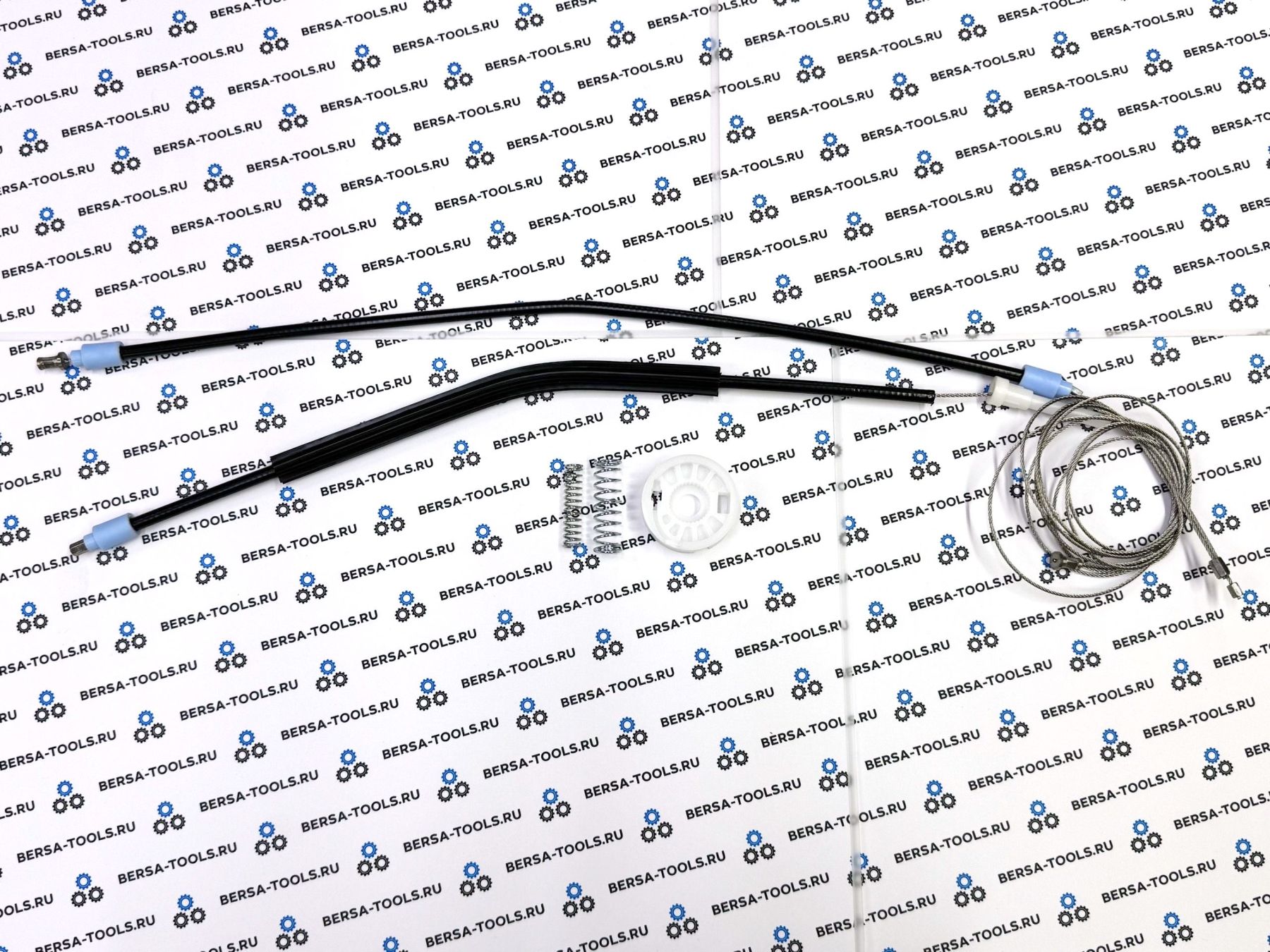 Ремкомплект применяется при ремонте стеклоподъемника в случае истирания ролика или обрыва тросов.