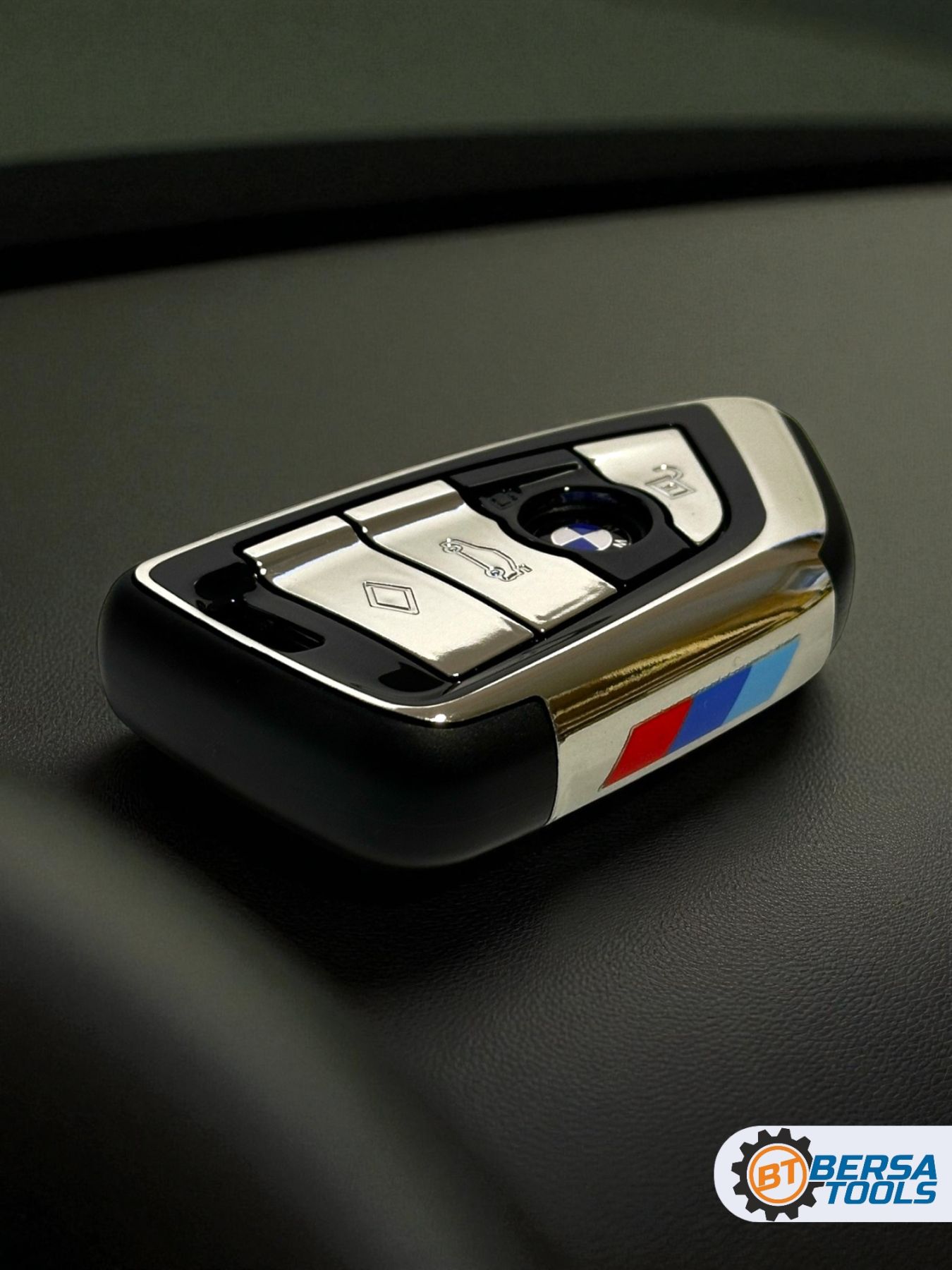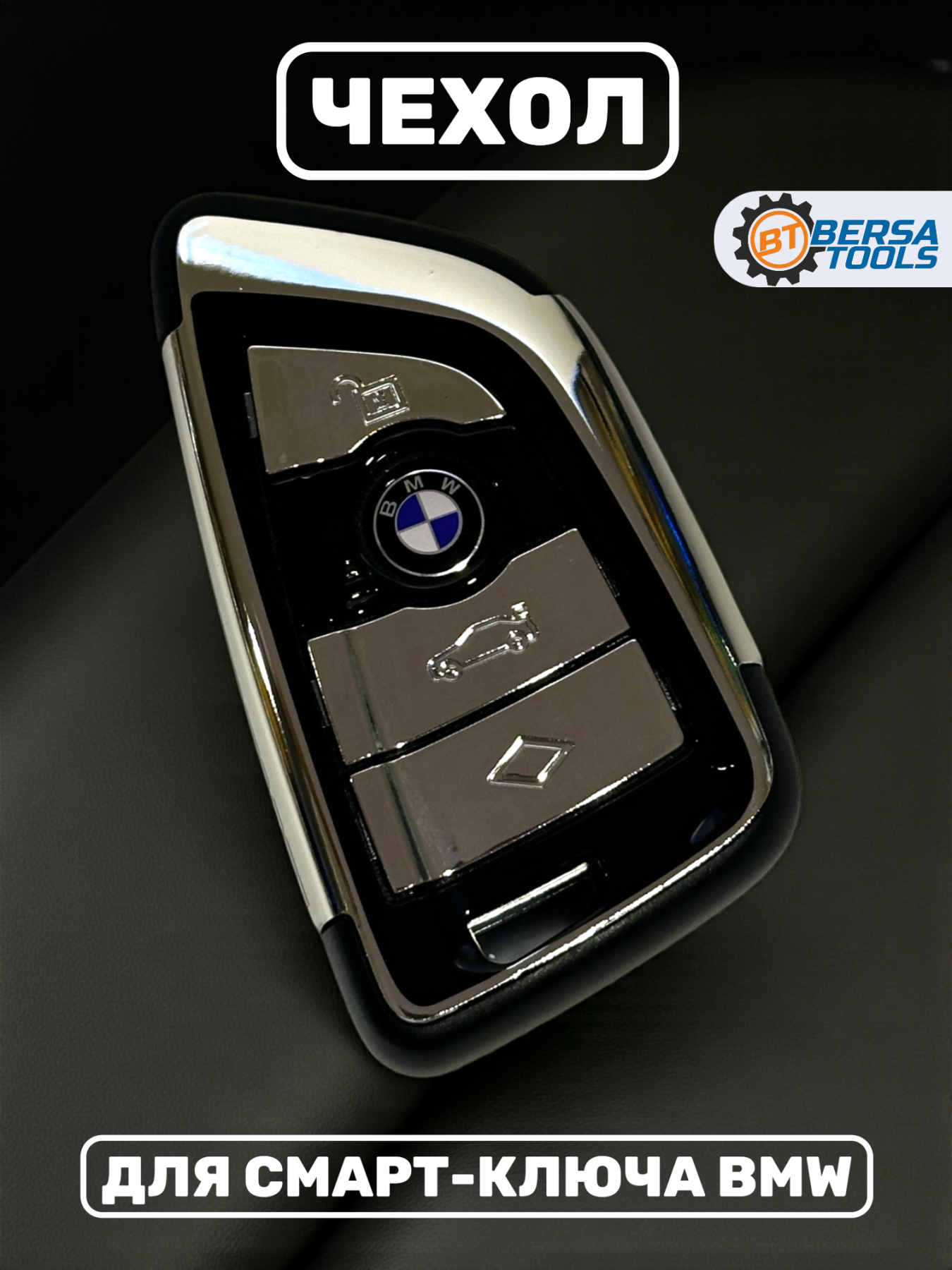 Хромированное покрытие добавляет смарт-ключу солидности и элегантности, идеально гармонируя с интерьером автомобиля BMW.