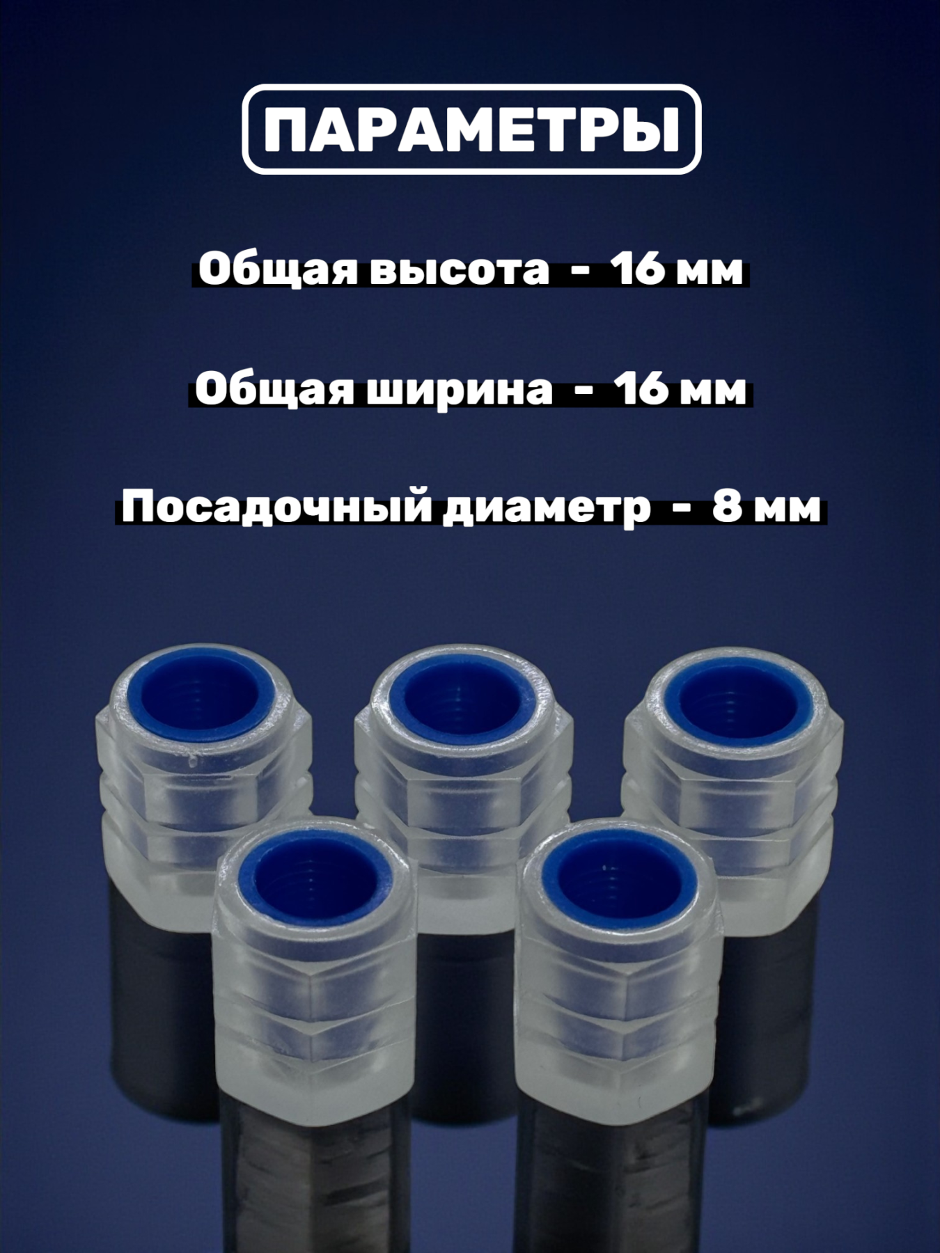 Колпачки на ниппель фосфорные ярко-синие, 5 шт
