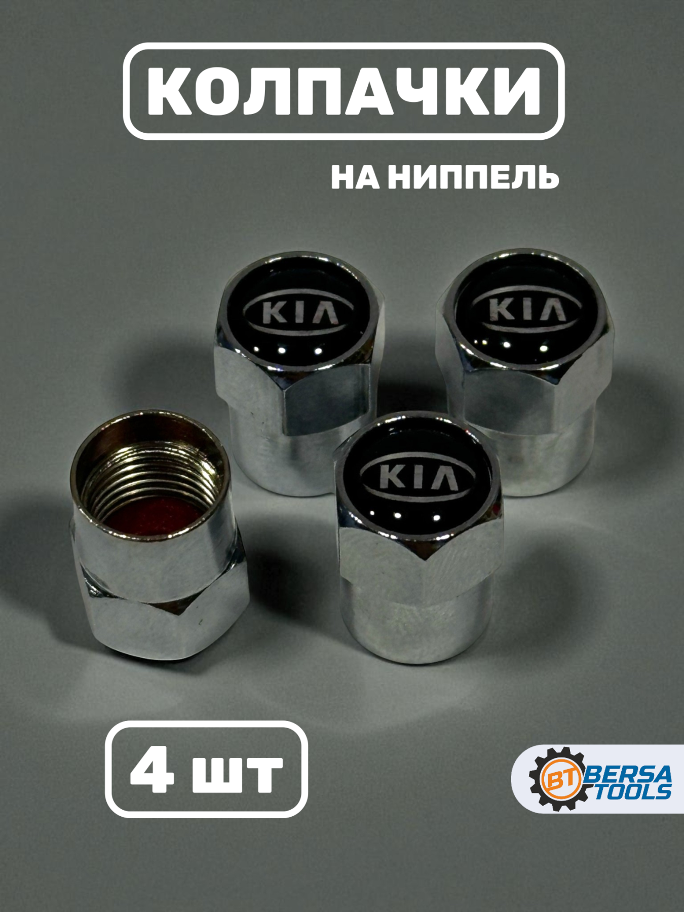 Колпачки на ниппель с эмблемой KIA хром, 4 шт