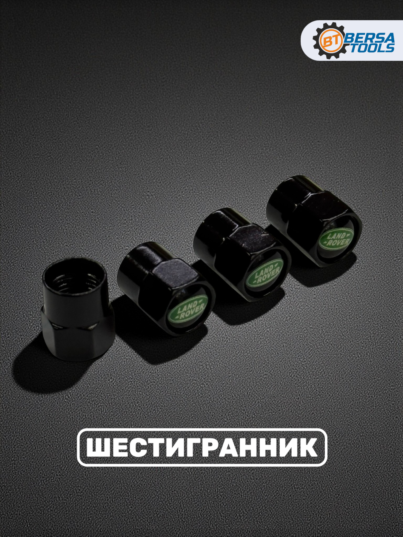 Колпачки на ниппель с эмблемой Land Rover черные, 4 шт