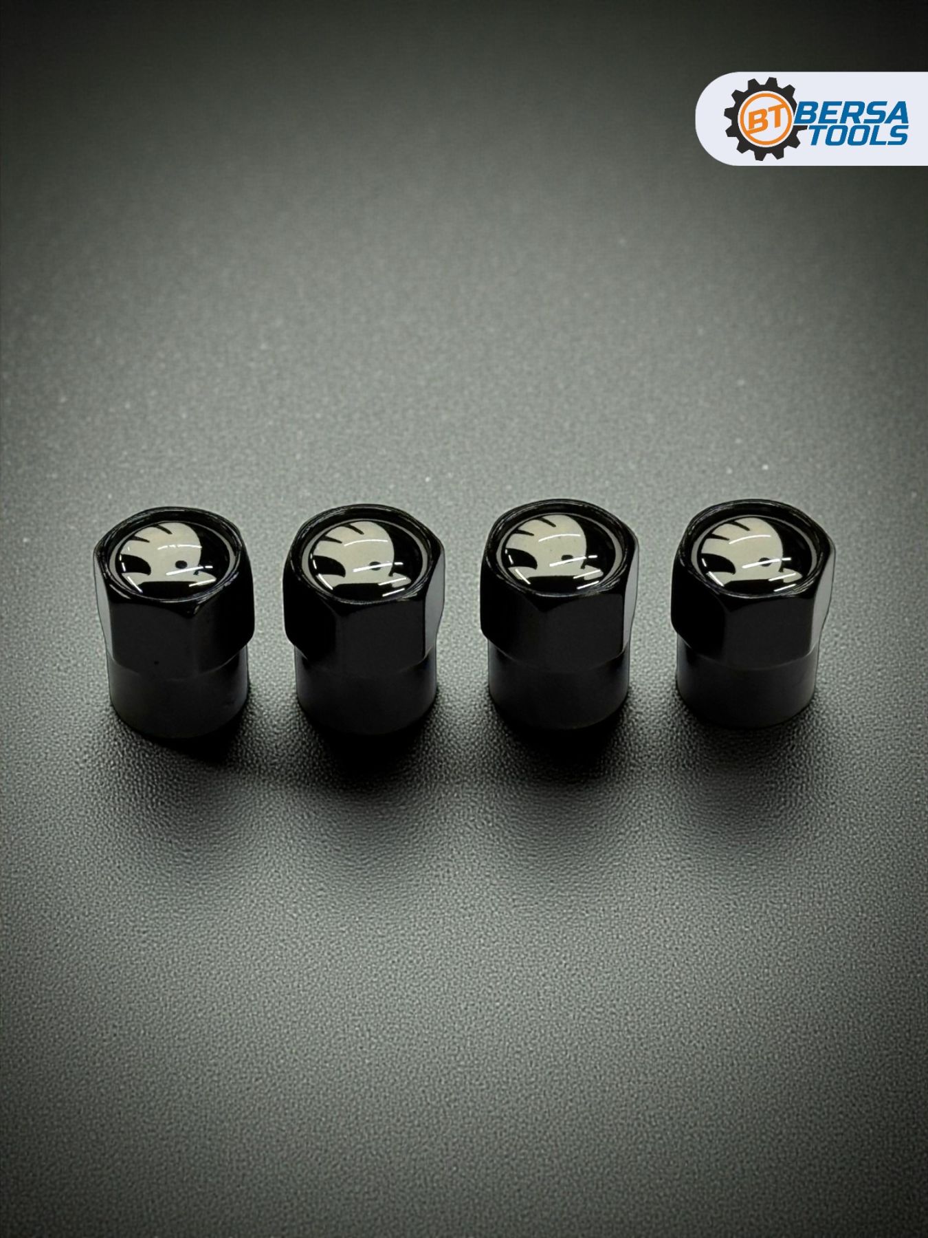 Колпачки на ниппель с эмблемой Skoda черные, 4 шт