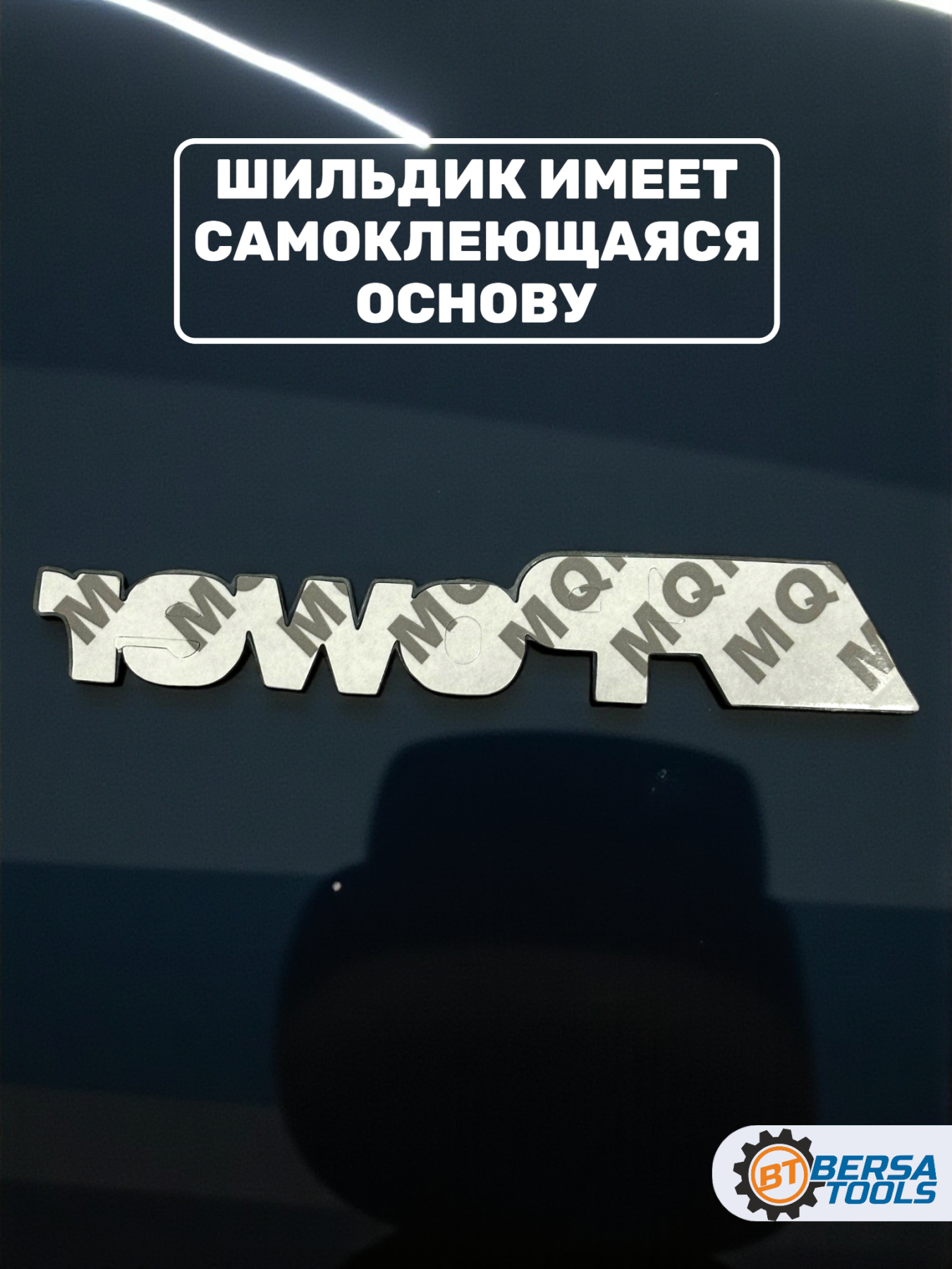 - Снимите защитную пленку с клейкого слоя эмблемы.