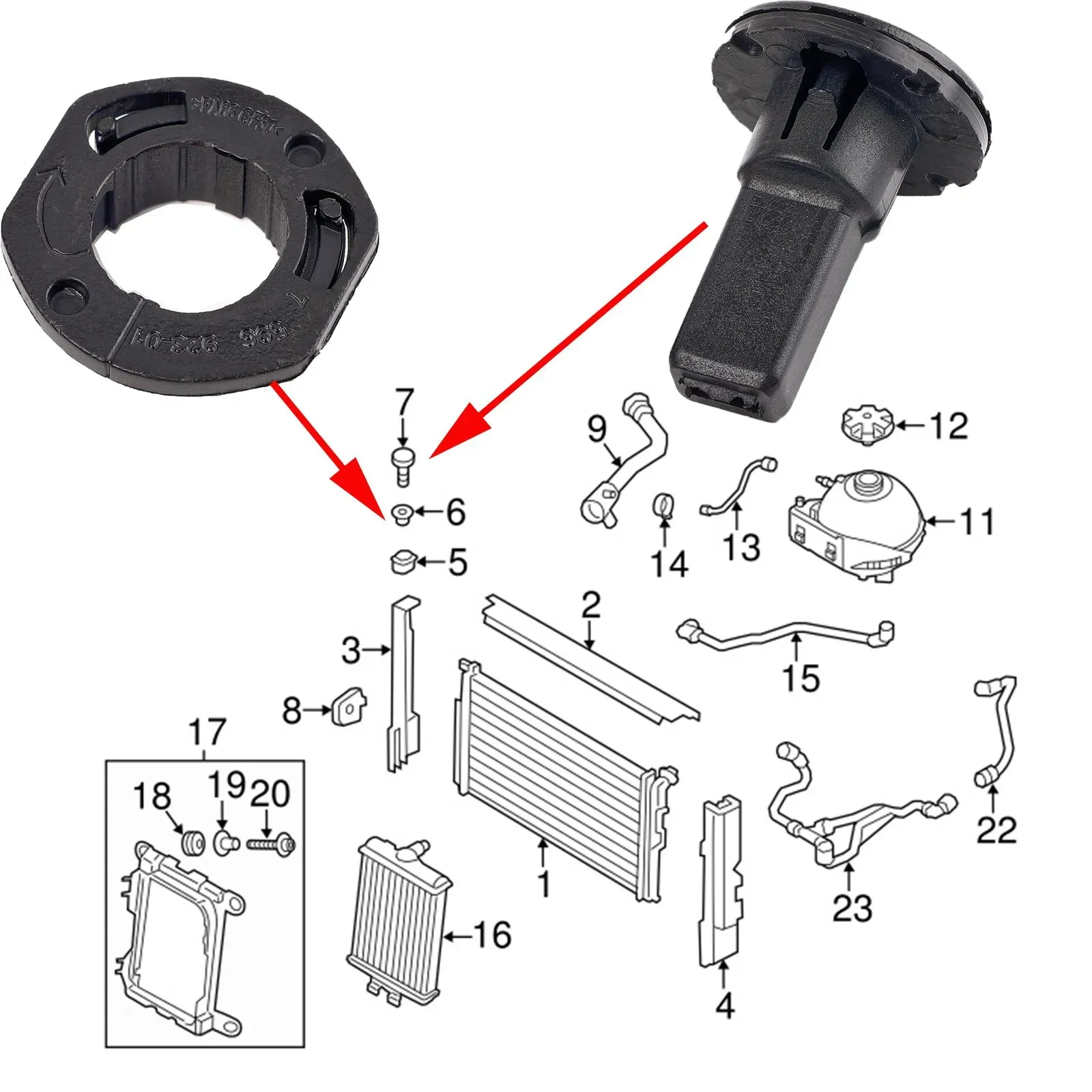 Верхний кронштейн радиатора с опорной втулкой (17117596922, 17117596923)