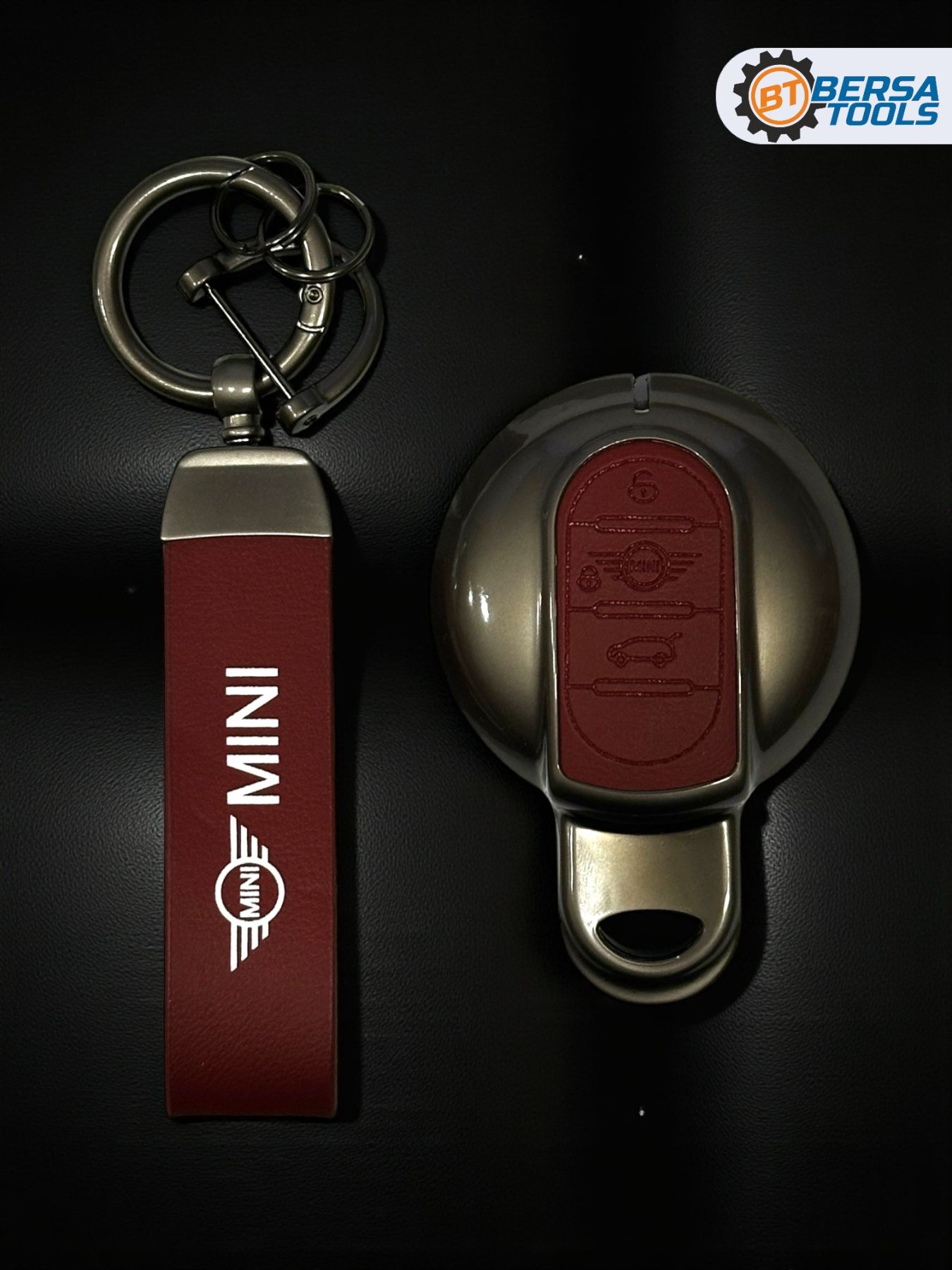 Придайте своему смарт-ключу Mini Cooper неповторимый стиль и надежную защиту с этим алюминиевым чехлом с красными кожаными вставками!