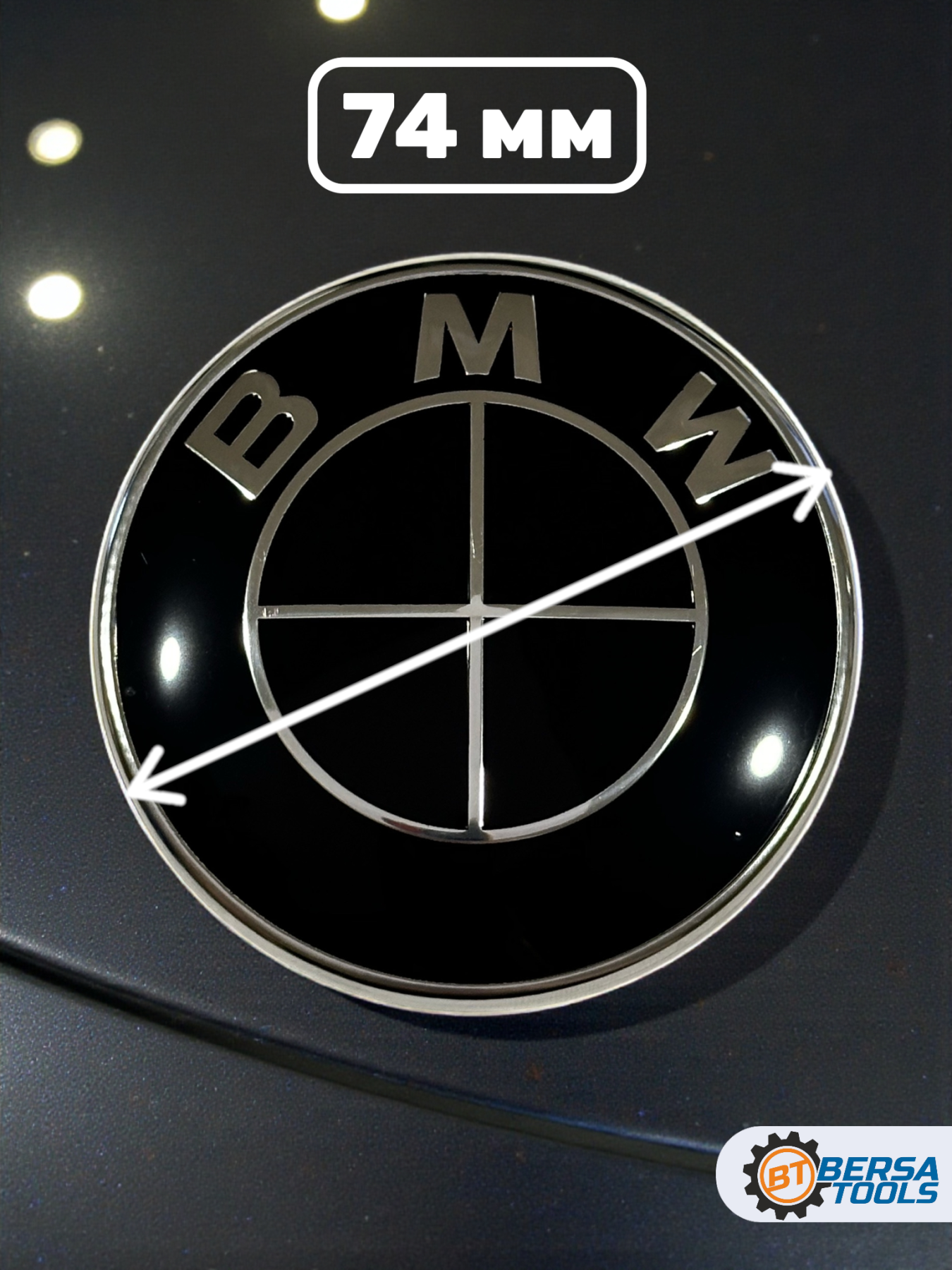 Черная эмблема BMW диаметром 74 мм с оригинальным номером - 51148203864.