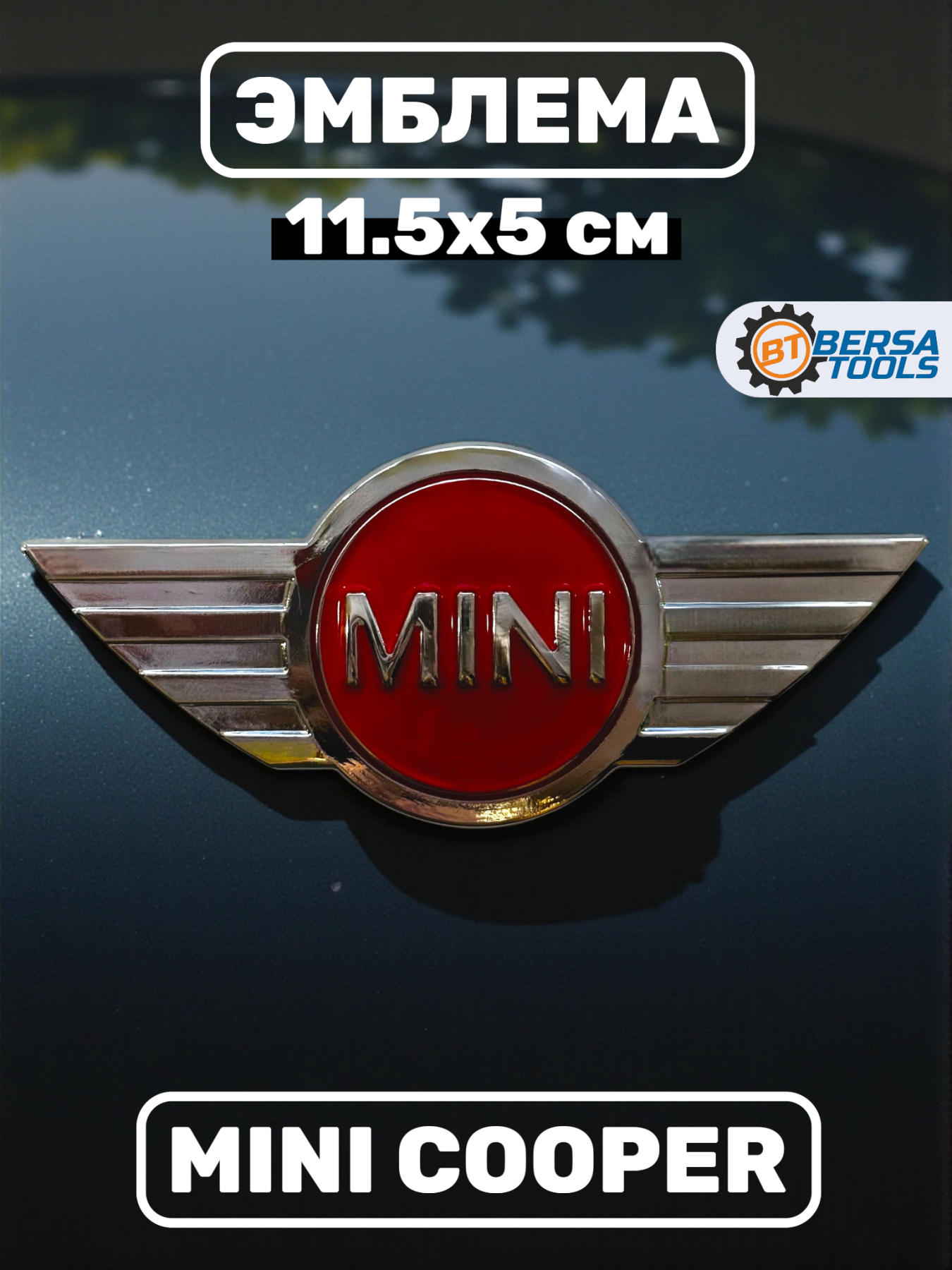 Эмблема MINI, красный-хром, 11.5х5 см-1