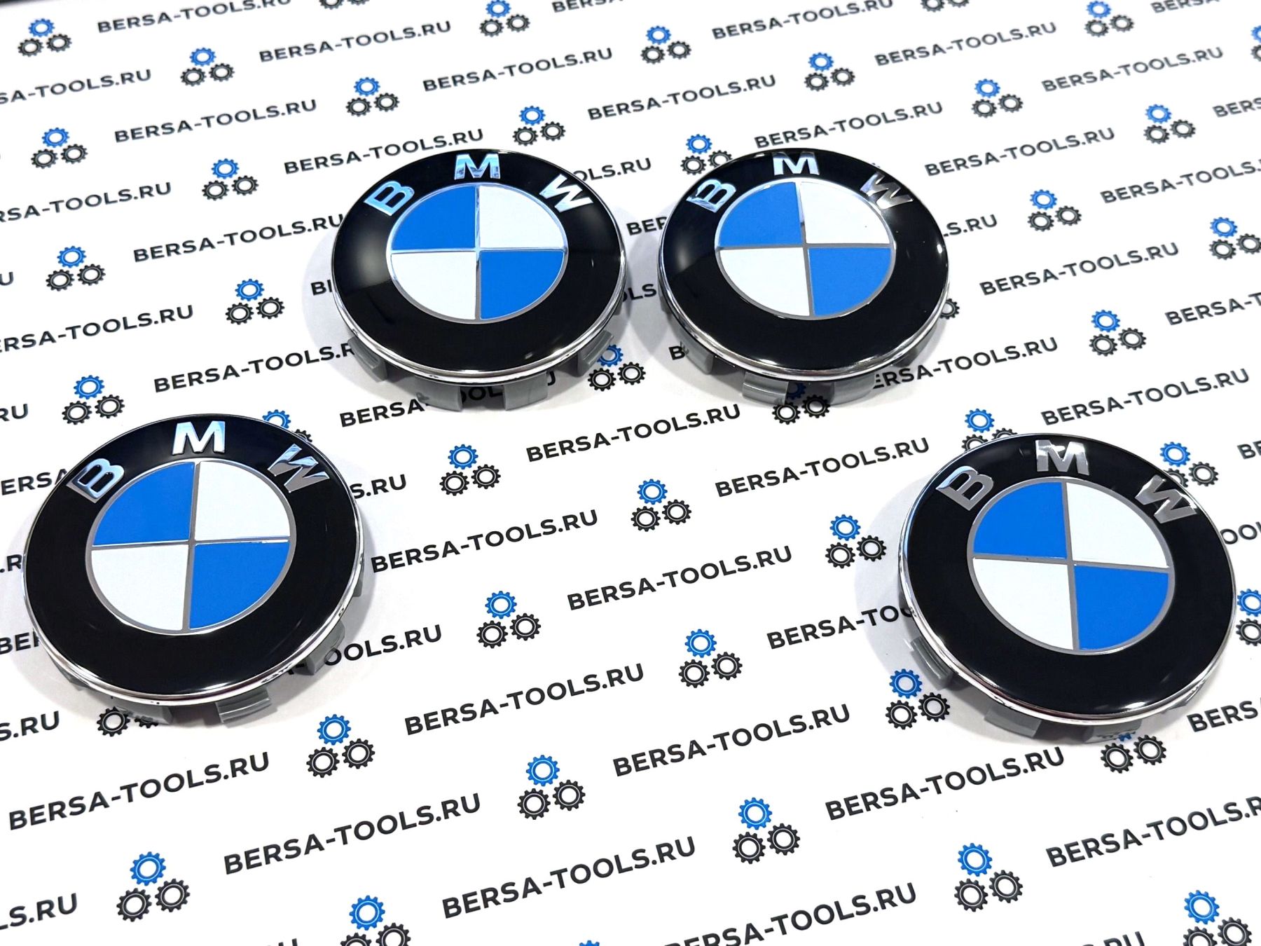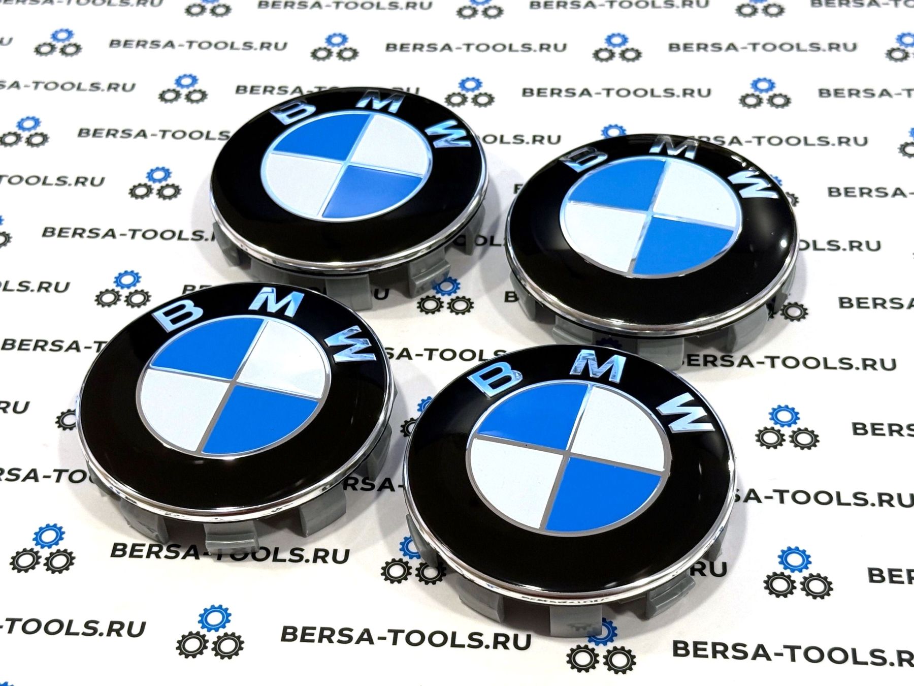 Эмблемы (колпачки) сине-белые в оригинальные колеса BMW (10 защелок)