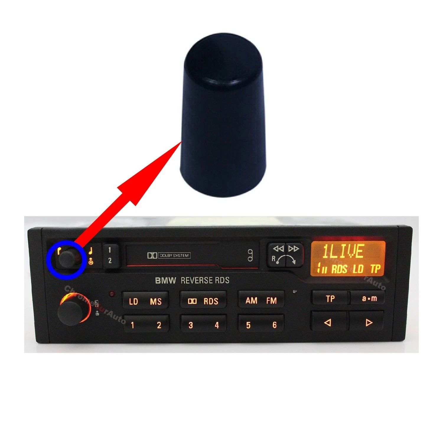 Кнопка регулировки для кассетной автомагнитолы BMW REVERSE RDS E6, E10, E20, E12, E21, E24, E28, E30, E31, E32, E34, E36, E38, Z3