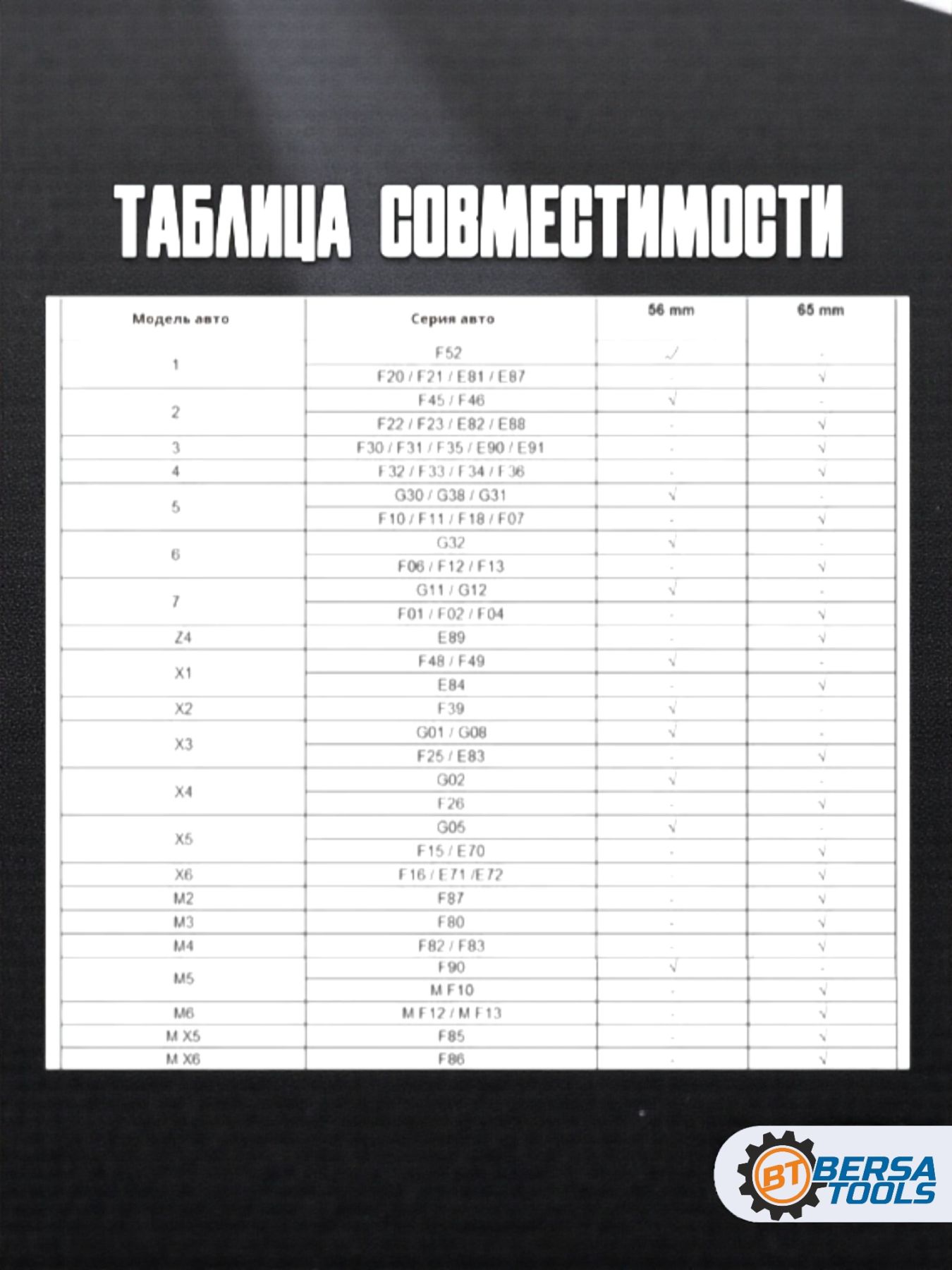 F52, F44, F45/2-серия G20,Тоurеr F45,2-серии Grаn Тоurеr F46/5-серии G30 / G31 / G38 / М5 F90 / 6-серии G32, 7-серии G11 / G12, Х1 F48 F49, Х2 F39, Х3 G01, G08, Х4 G02, Х5 G05, Х6 G06, Х7/ G07 а так же на все остальные модели G серии с разболтовкой колес 5х112