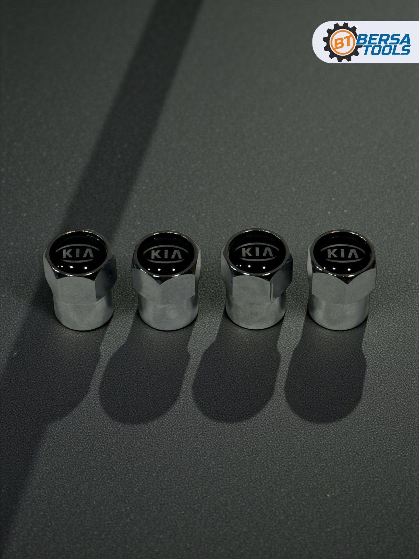 Колпачки на ниппель с эмблемой KIA хром, 4 шт