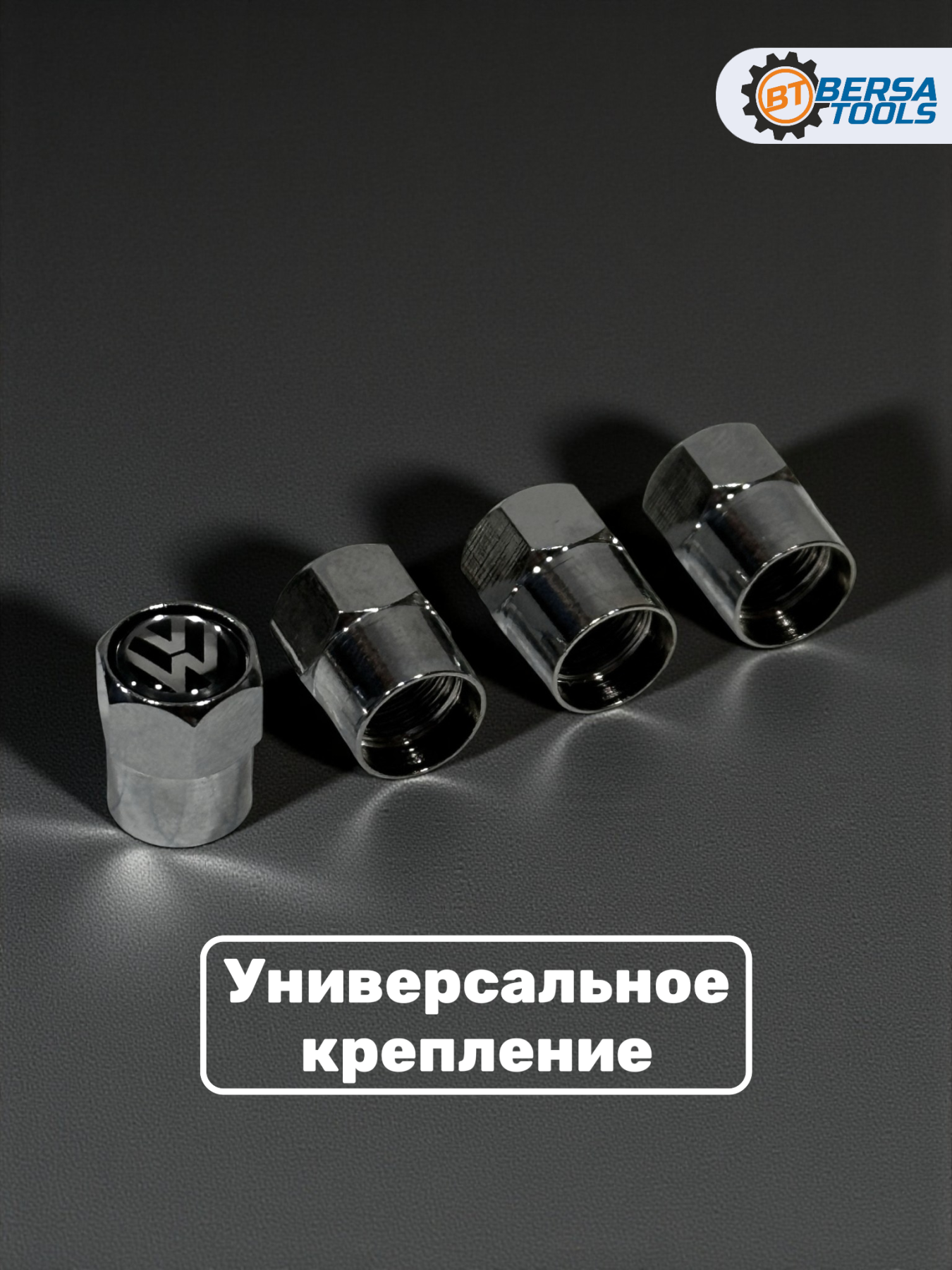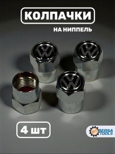 Колпачки на ниппель с эмблемой Volkswagen хром, 4 шт
